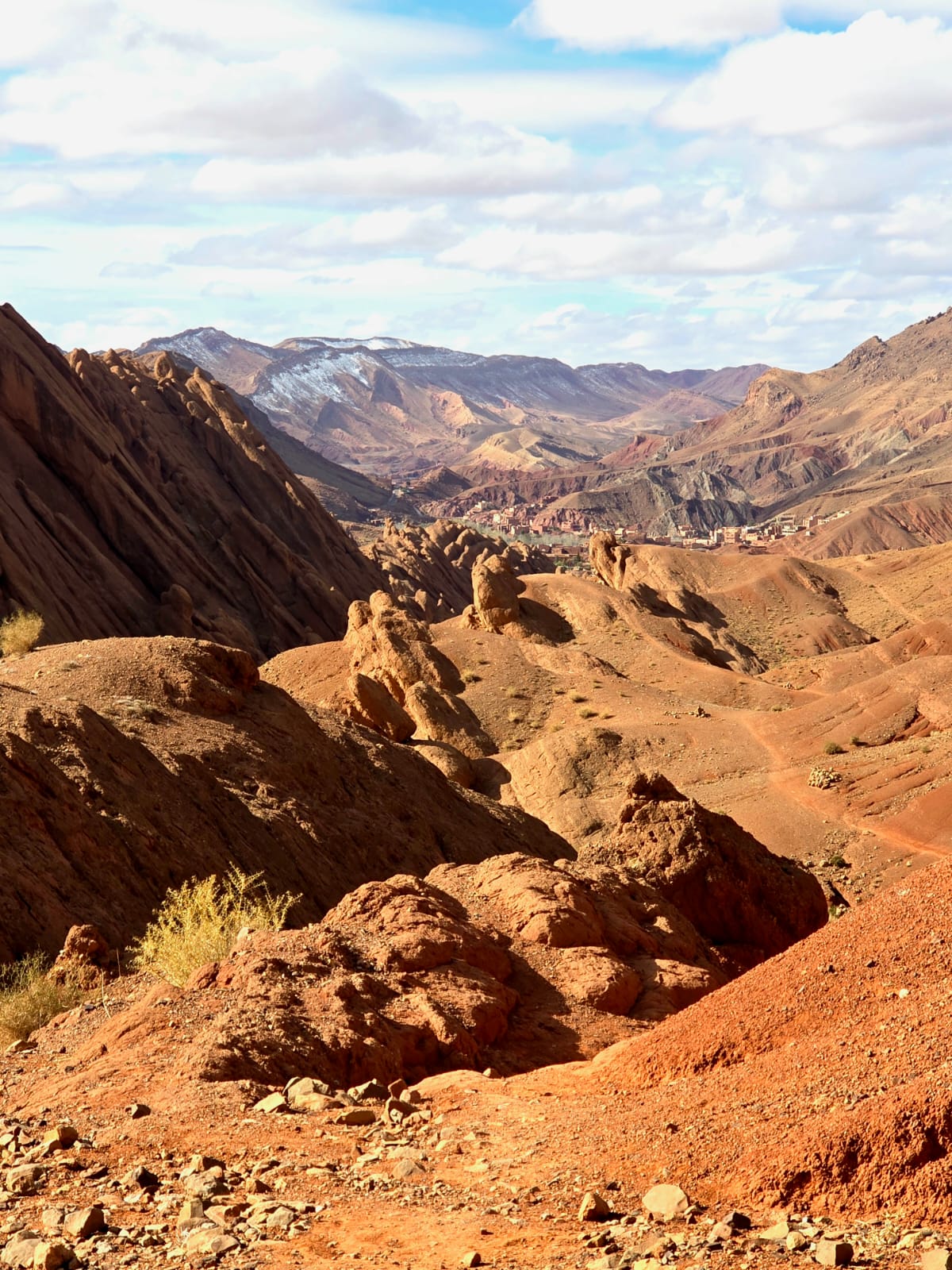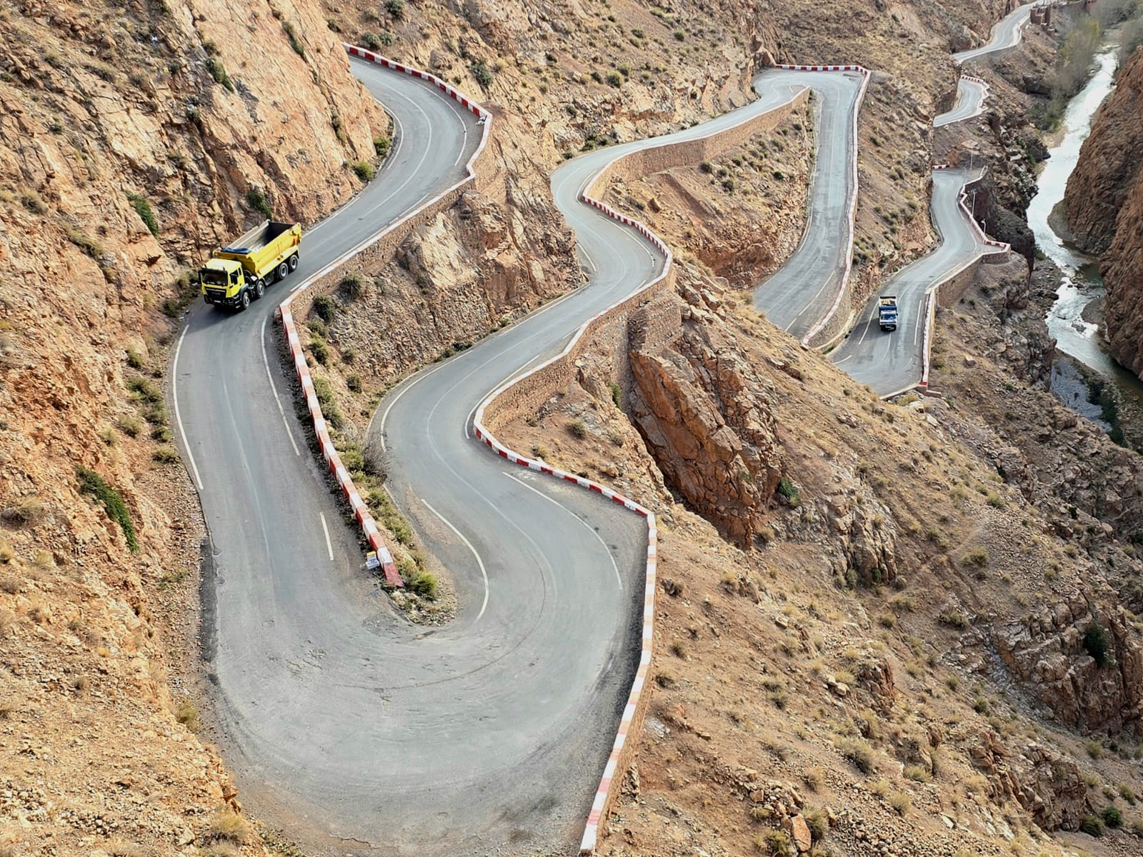 Nach dem Frühstück setzen wir unsere Reise durch das Tal der Rosen fort (blühen April, Mai) und folgen einer 15 km langen Piste bis Boutaghrar. Wir treffen auf Nomaden mit ihren Herden. Eine wunderschöne Landschaft mit beeindruckenden Felsformationen in mehreren Farben leuchtend lädt uns immer wieder zum Anhalten ein. Am Ufer des Dadés entlang, vorbei an zahlreichen Kasbahs, Oasendörfern und Dattelpalmen erreichen wir die Dadés-Schlucht, die sich in atemberaubenden Serpentinen in die Berge hochzieht.