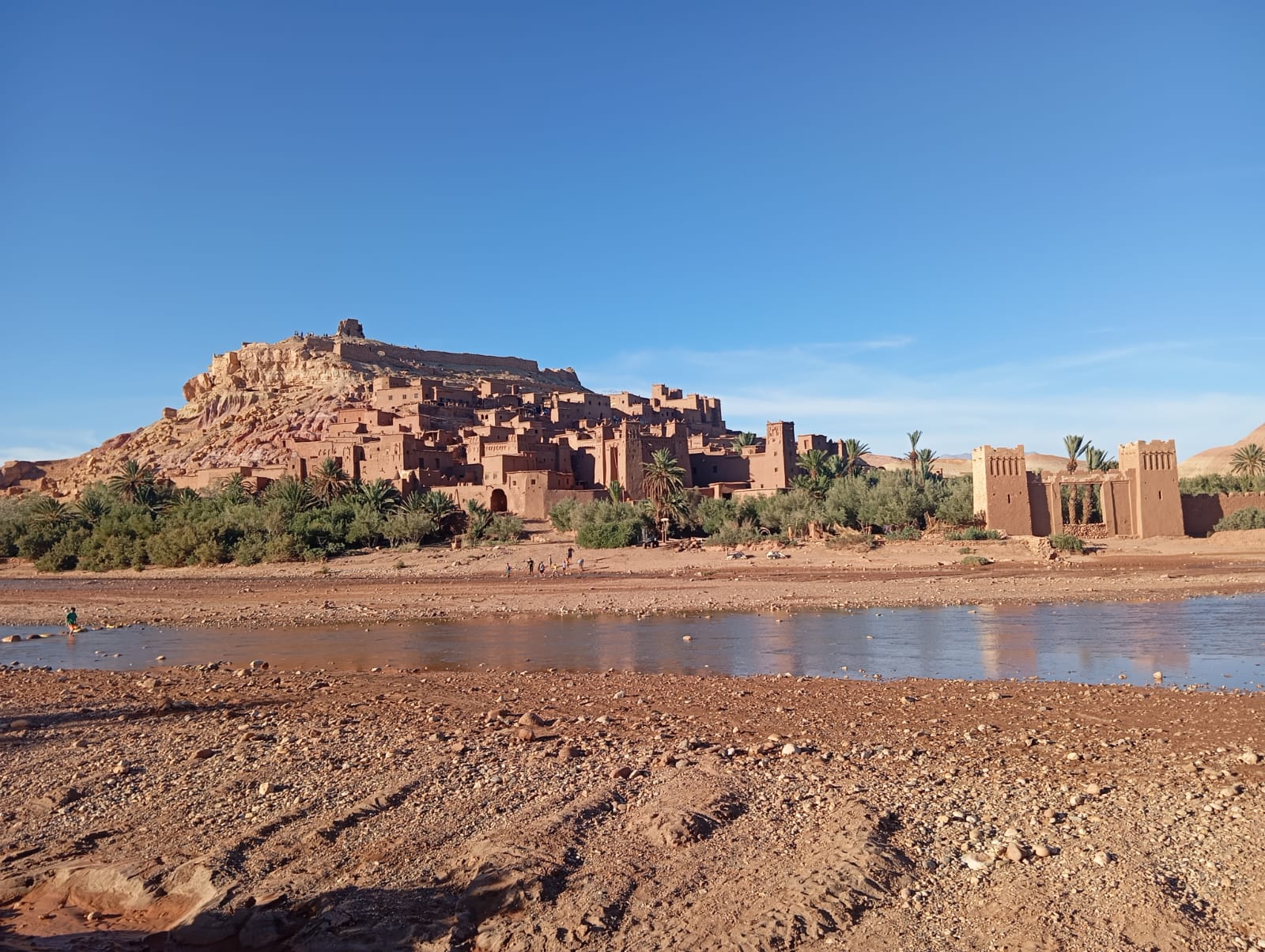 Nach einem Frühstück in der milden Morgensonne kehren wir mit dem Geländefahrzeug zurück nach Merzouga. Unsere Reise geht weiter durch die Hammada – die Steinwüste des Anti-Atlasgebirges, eine Kulisse einer Mondlandschaft gleich, hinunter ins eindrucksvolle Draa- Tal. Kilometerlange Palmenoasen begleiten uns entlang dem Wadi Draa, dem längsten Fluß Marokkos. Sie waren ein heiß ersehntes Etappenziel für die Karawanen zwischen Timbuktu und Marrakech. | (F/-/A)